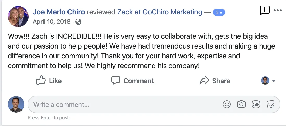 We're opening up the doors to completely learn everything we do for our high paying chiropractic clients. Instead of paying thousands monthly, we're doing recorded trainings and live Q&A trainings, step by step so we make sure you implement, execute, and begin amazing growth!